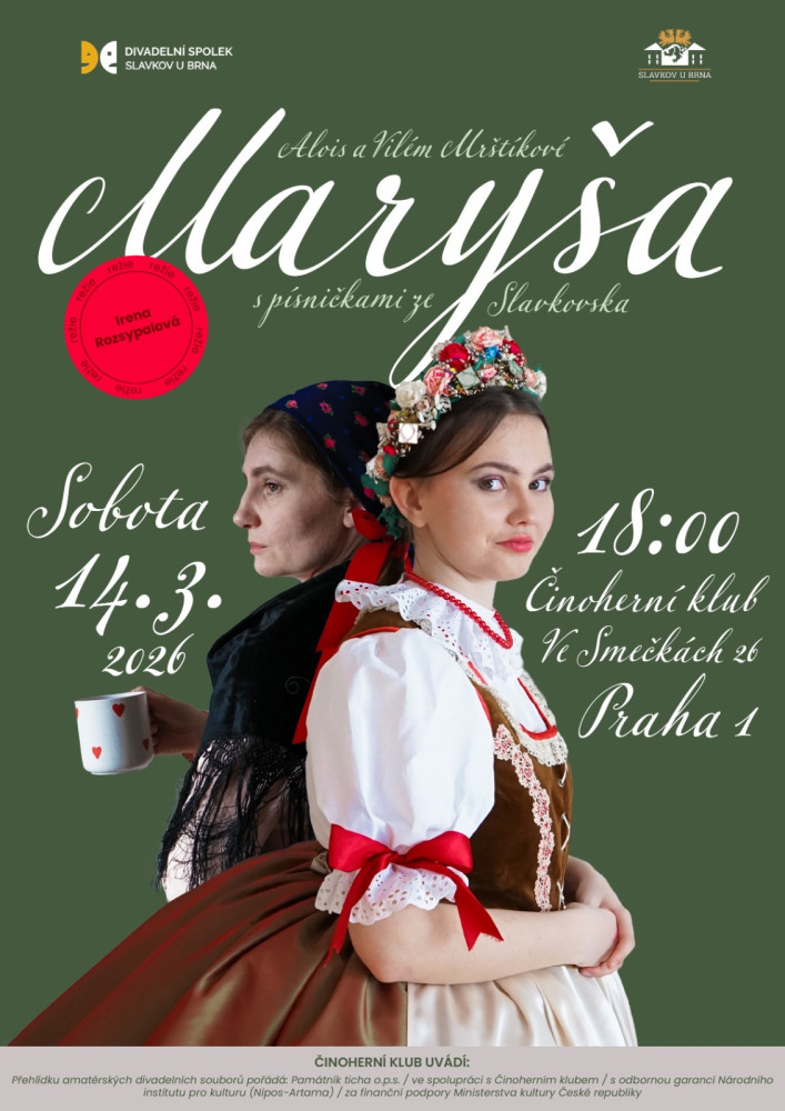 Maryša vaří kafe v Činoherním klubu 14.3. od 18:00 - DS Slavkov u Brna přiváží drama bratří Mrštíků o nesvobodě a nepochopení plné tradičních krojů i lidových písní v režii známé herečky Ireny Rozsypalové.