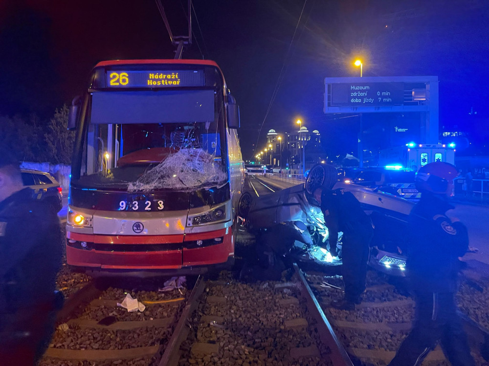 Zdrogovaný řidič narazil autem do tramvaje. Při nehodě se zranily dvě mladé ženy
