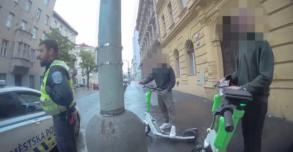 VIDEO: Po chodníku a pod vlivem alkoholu. Strážníci zastavili nebezpečné jezdce na koloběžkách