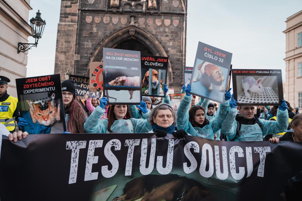 VIDEO: Účastníci průvodu Prahou protestovali proti pokusům na zvířatech