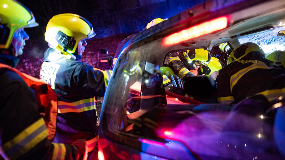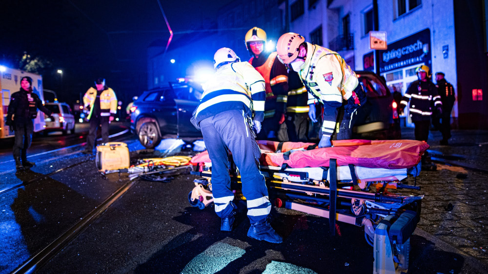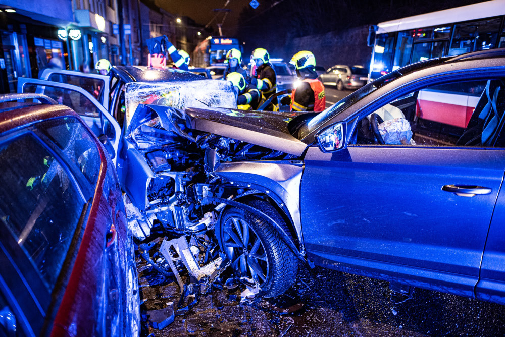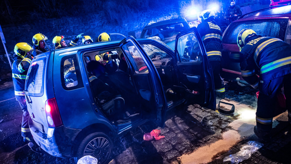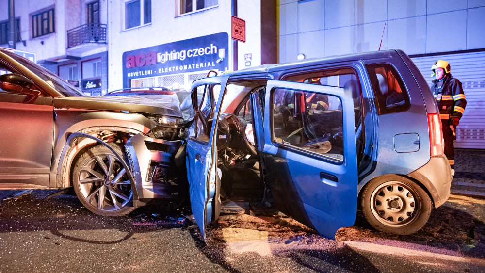 VIDEO: V Nuslích se v noci čelně srazila dvě auta