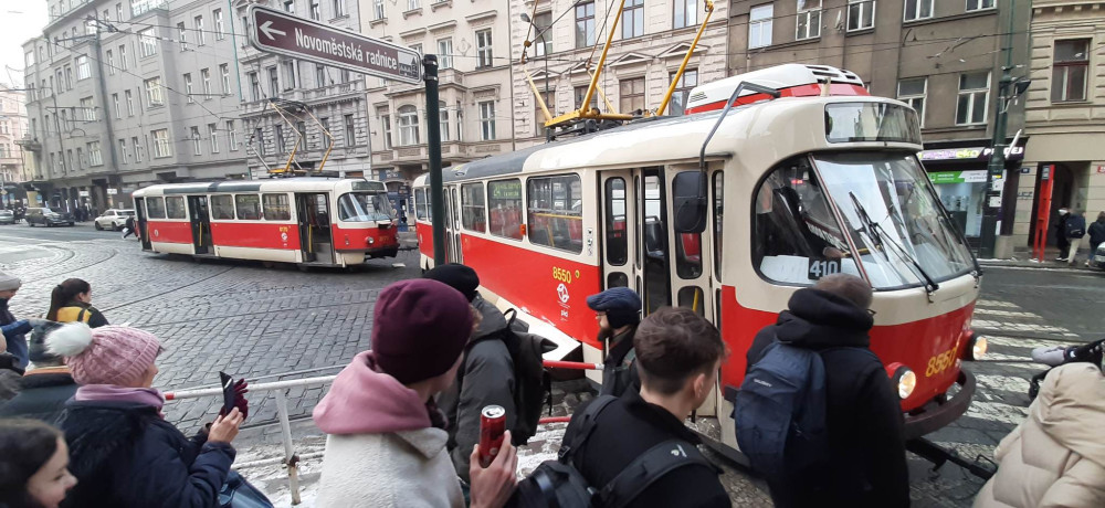 V centru Prahy vykolejila tramvaj. Zastavila se až na chodníku