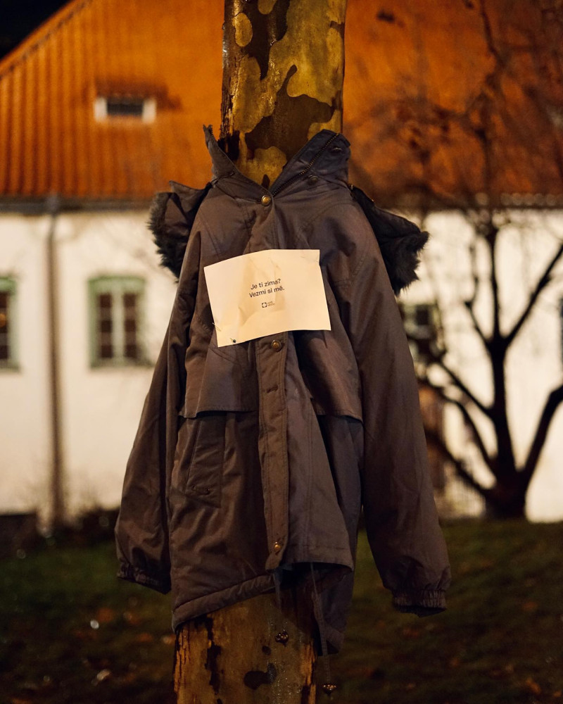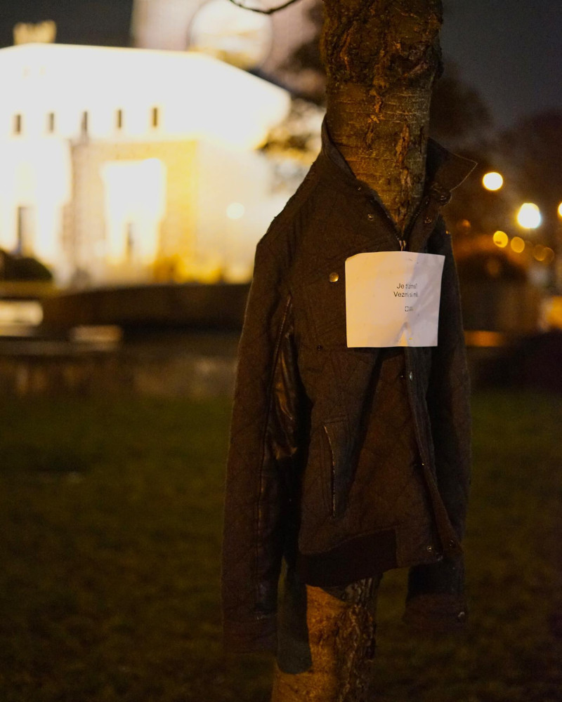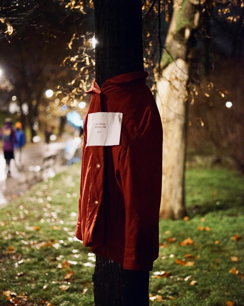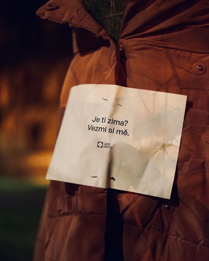 Je ti zima? Vezmi si mě. Dobrovolníci rozvěsili v ulicích Prahy bundy pro potřebné
