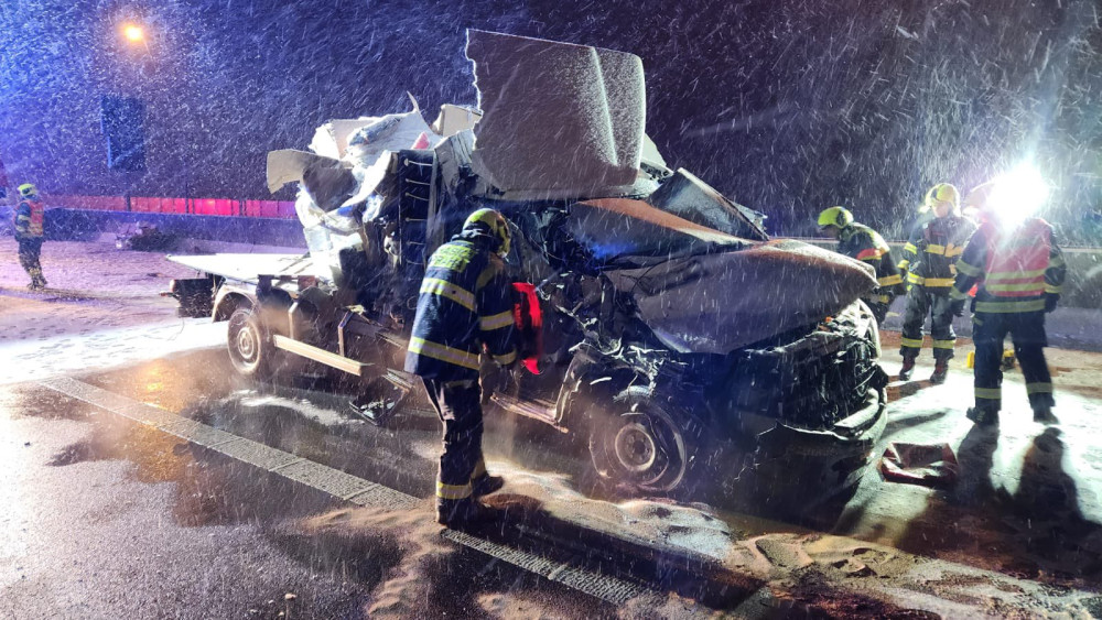 Na Radotínském mostě se srazila dodávka s kamionem, jeden člověk zemřel