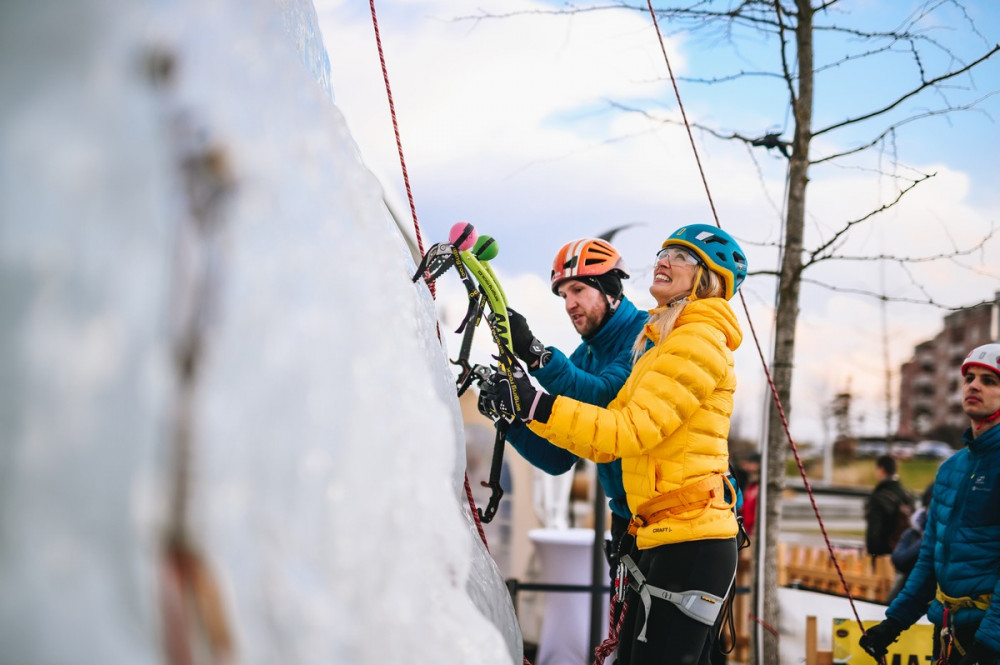 FOTO: Na Černém mostě vyrostla ledová stěna. V sobotu se u ní bude podepisovat Adam Ondra