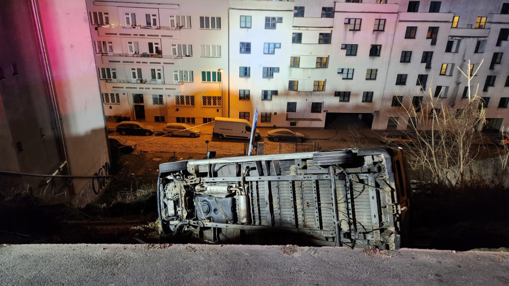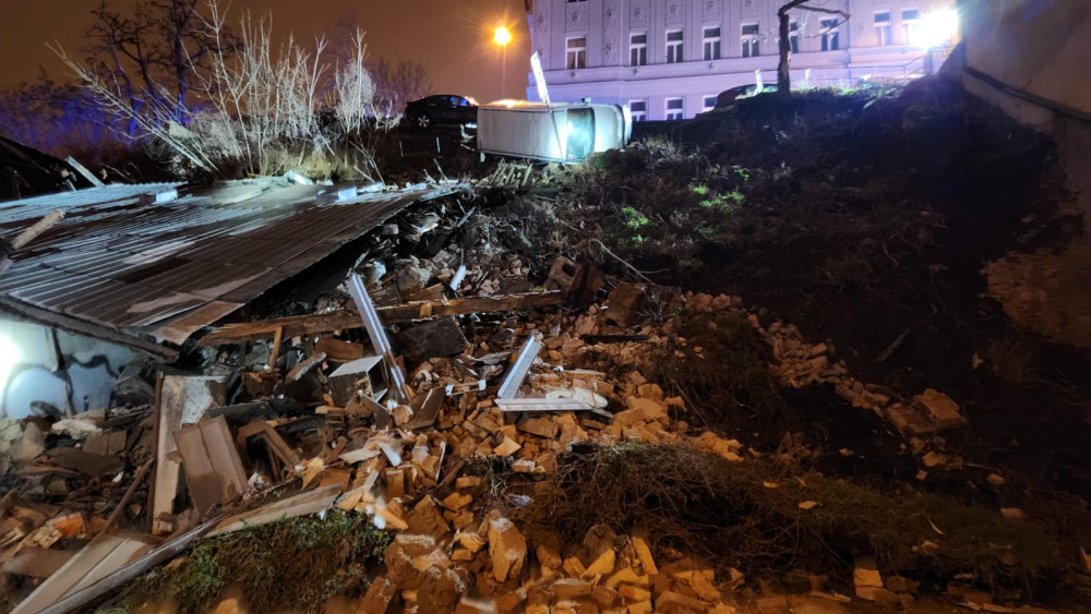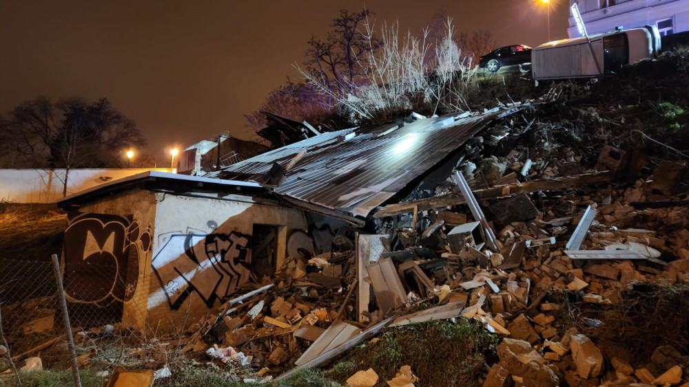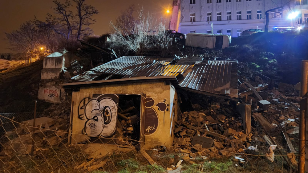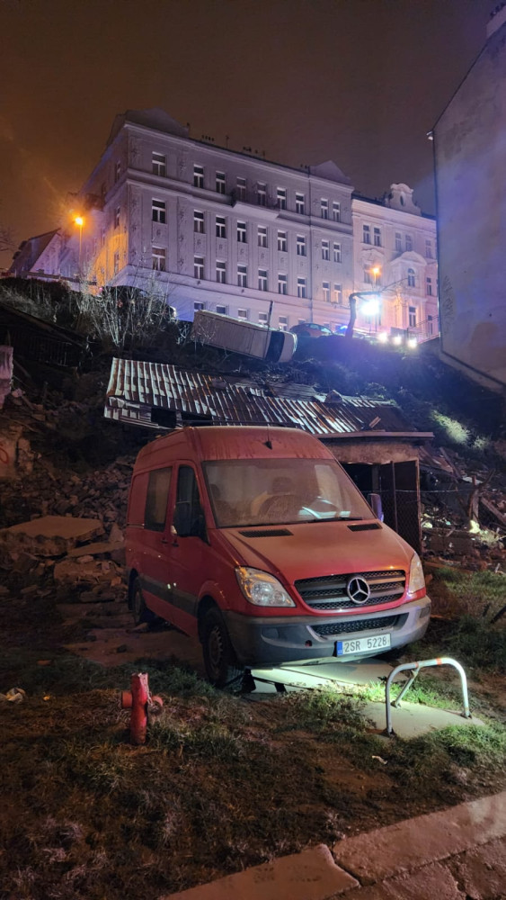 V Praze se v noci utrhl svah s kusem silnice, chodníkem a budovou