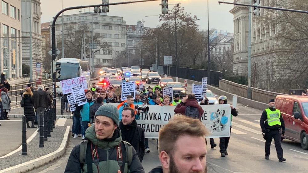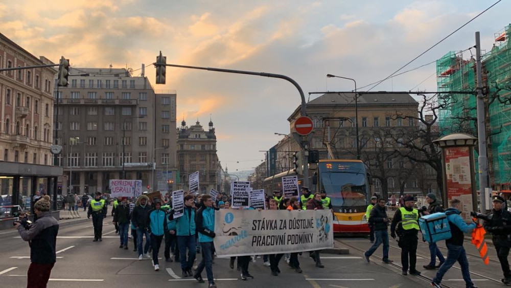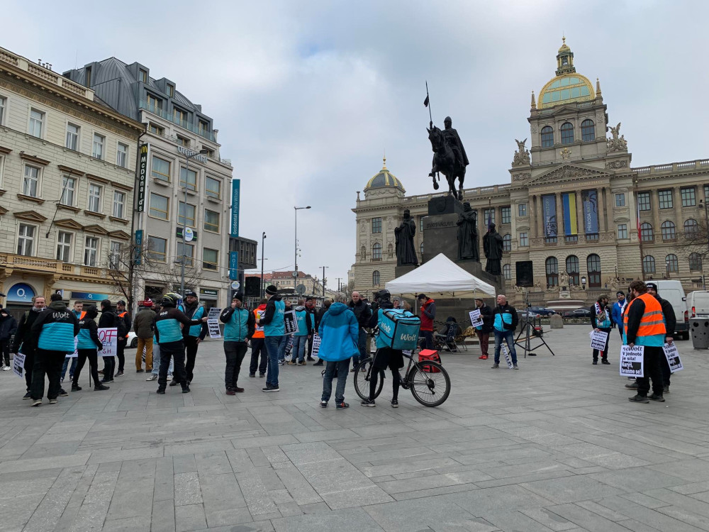 V Praze se sešly stovky kurýrů Woltu. Chtějí zablokovat magistrálu