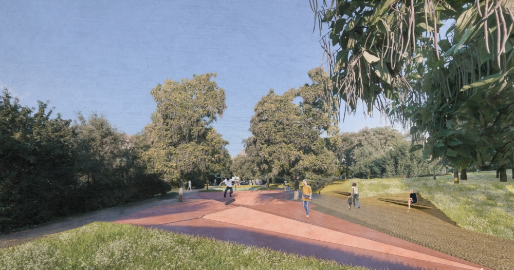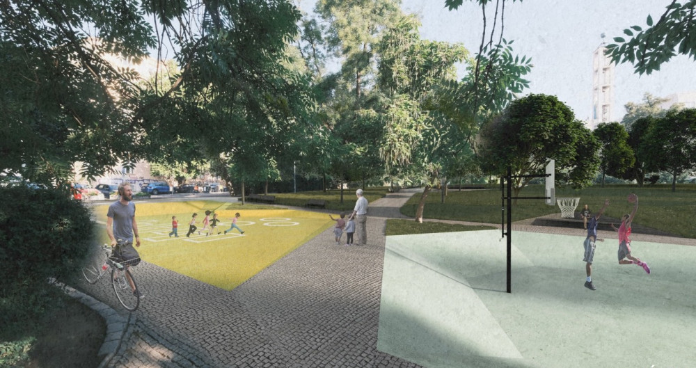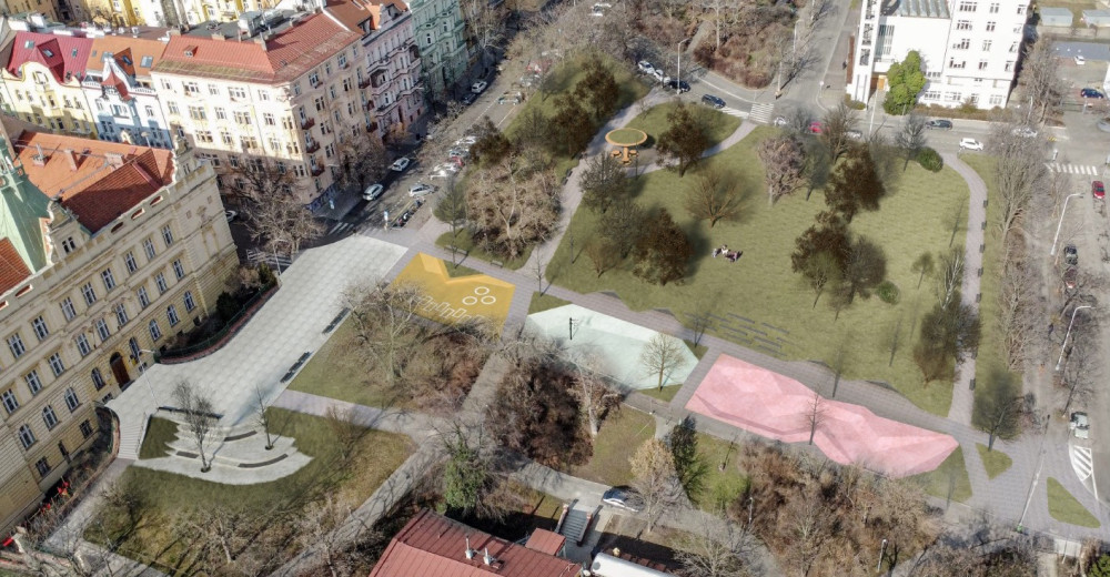 VIZUALIZACE: Praha 2 chystá revitalizaci Sadů Bratří Čapků. Oddělí děti a pejskaře