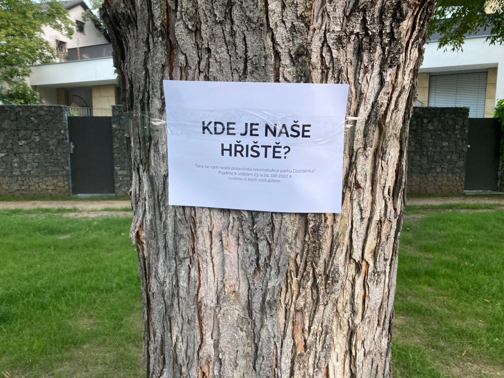 V září minulého roku vyvěsili před volbami v parku letáky s dotazy.