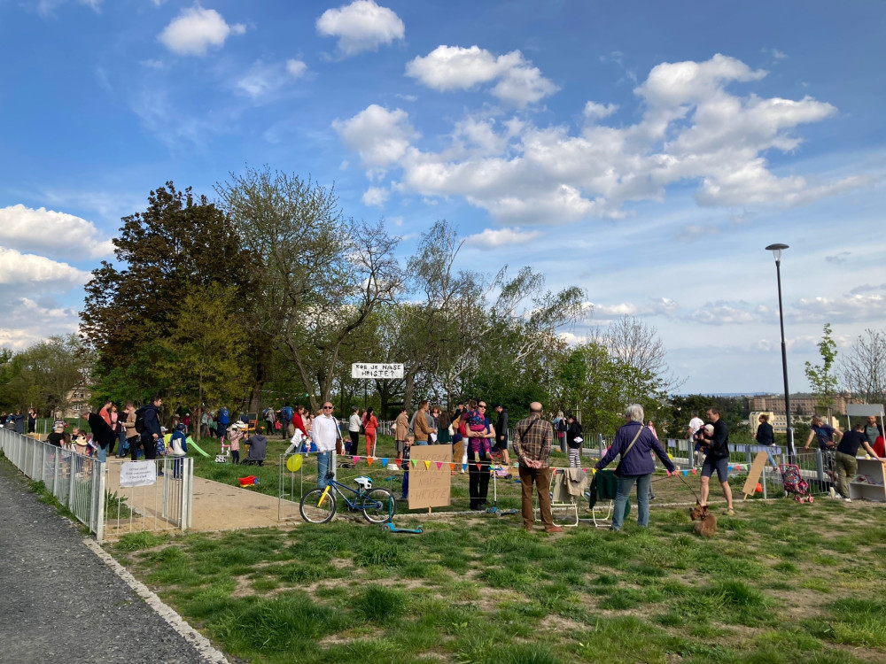 VIDEO: Rodiče s dětmi se sešli na místě bývalého dětského hřiště. Chtějí ho zpátky