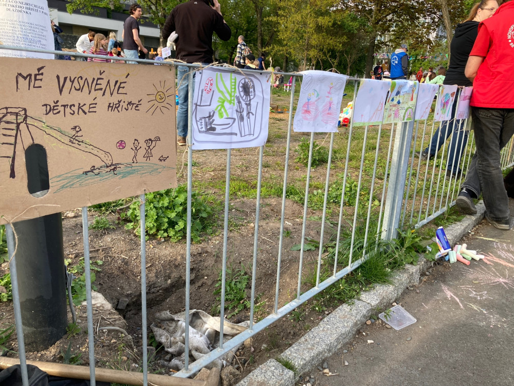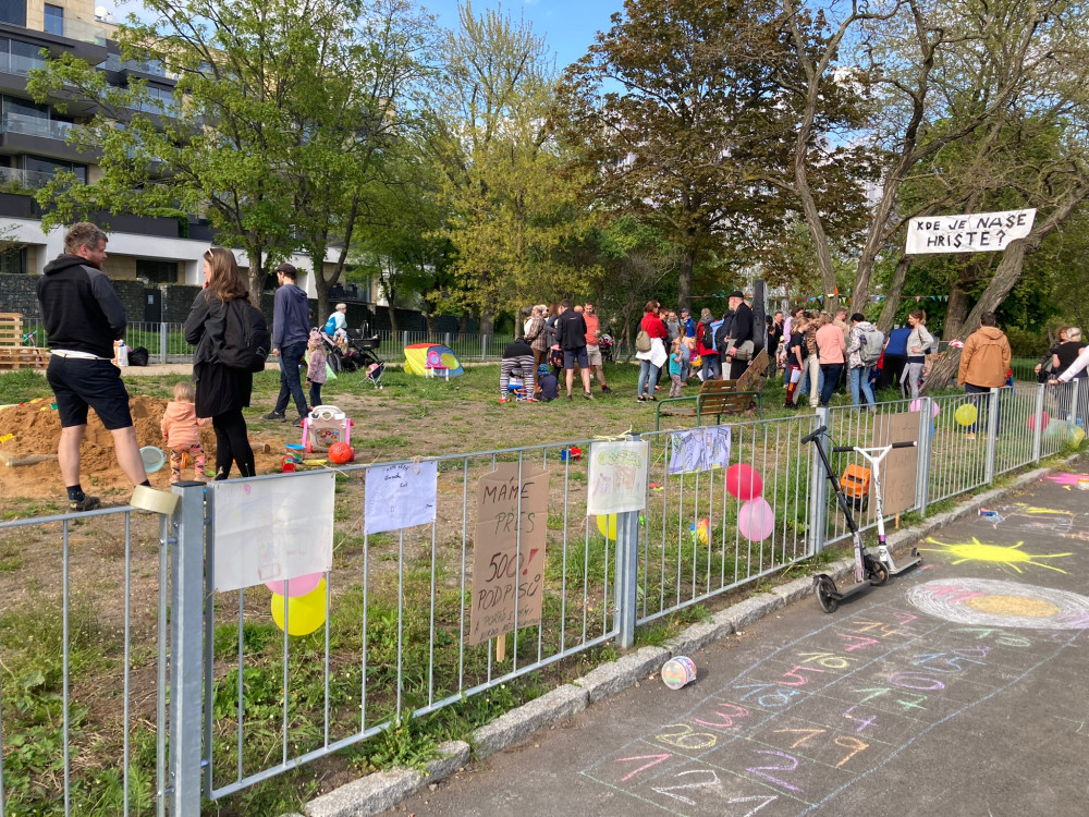VIDEO: Rodiče s dětmi se sešli na místě bývalého dětského hřiště. Chtějí ho zpátky