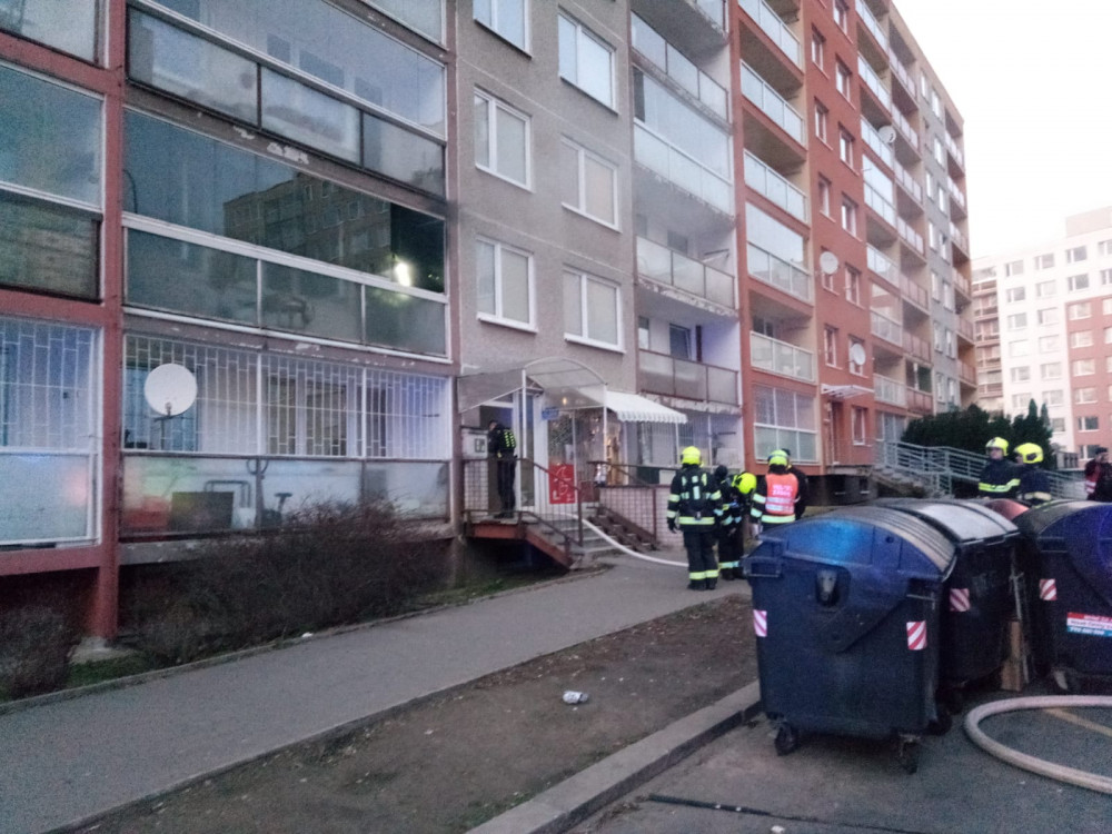 Při požáru bytu na Černém Mostě hasiči evakuovali přes třicet osob. Jeden člověk se zranil