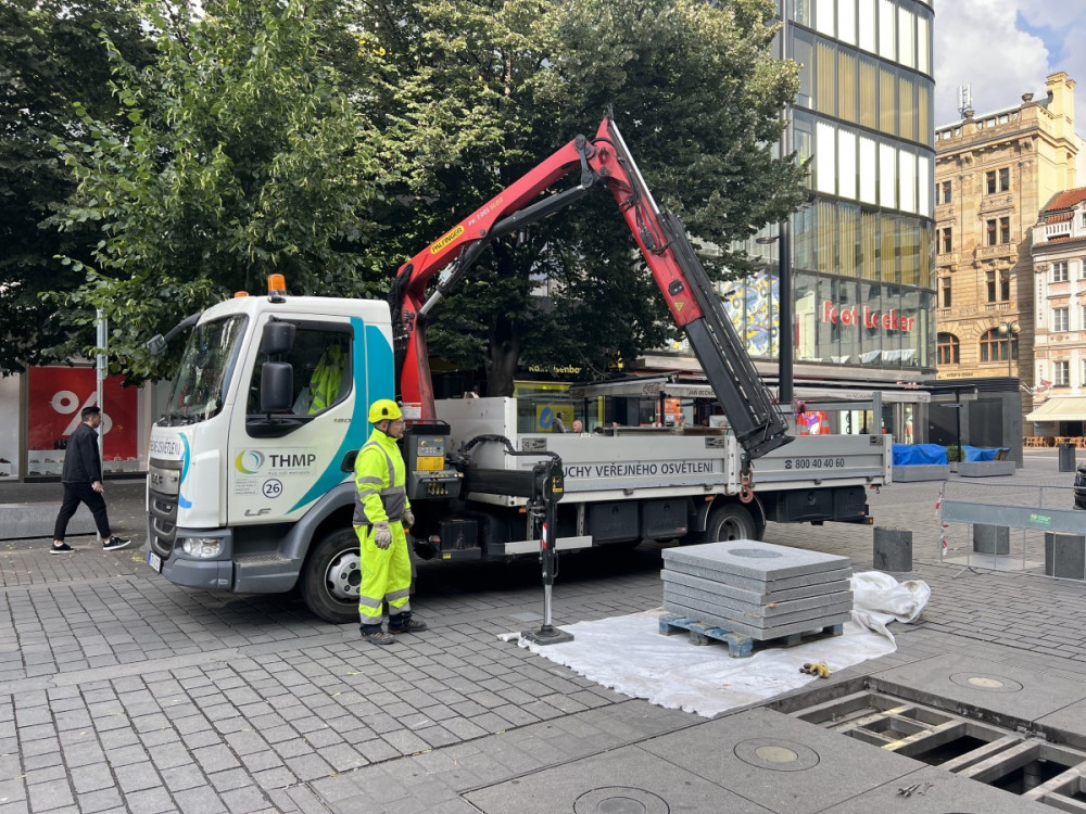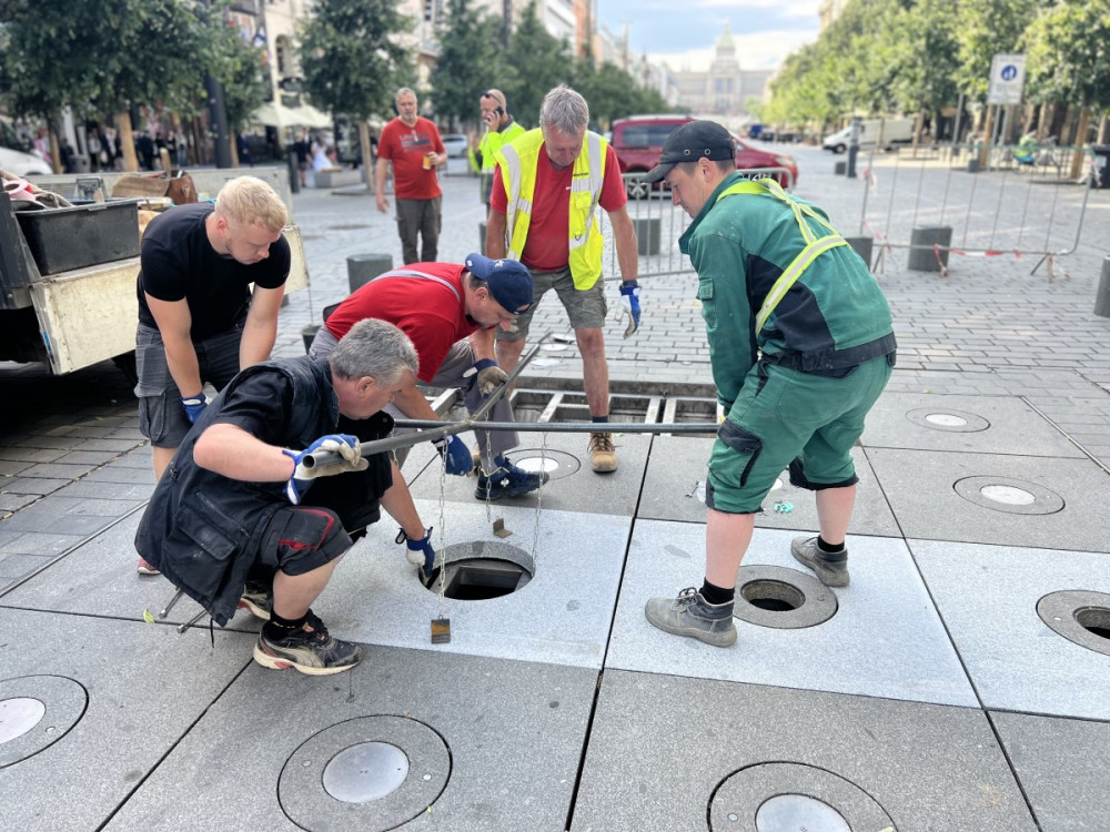 Zničená fontána na Václavském náměstí už je zase v provozu, ochránit ji mají betonové sloupky