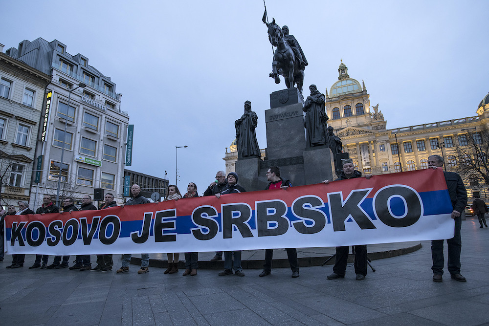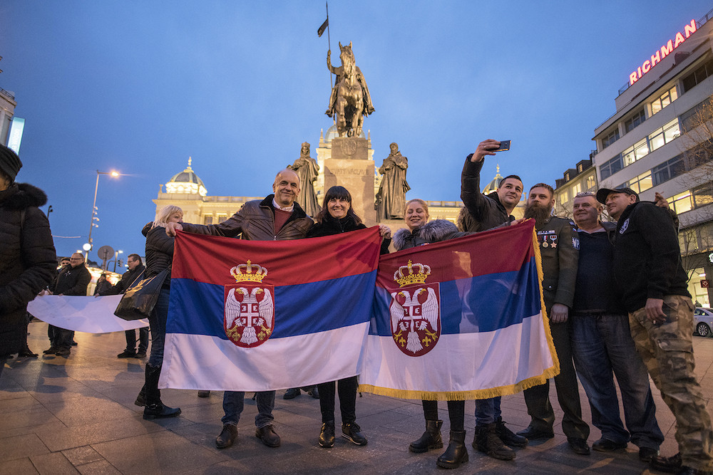 FOTO: Kosovo je Srbsko! Na Václaváku se demonstrovalo proti ukradení Kosova, řečnil i Foldyna