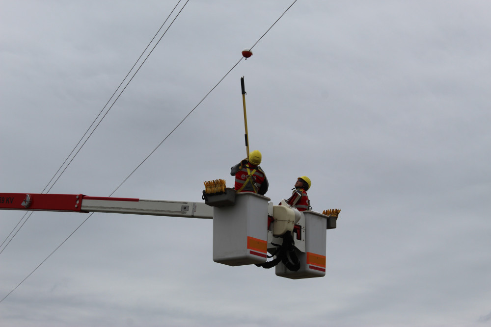 Energetici s ochranáři dávají na dráty vysokého napětí výstražné koule, aby neumírali ptáci