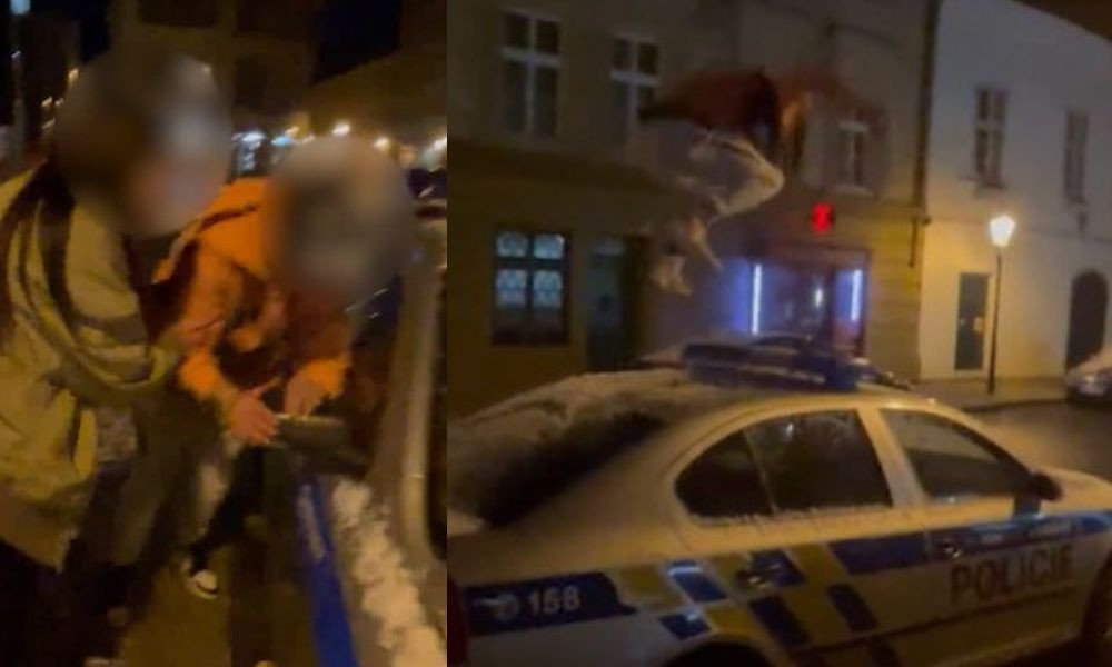 VIDEO: Mladík si užíval divokou demolici policejního auta, akci režíroval kamarád