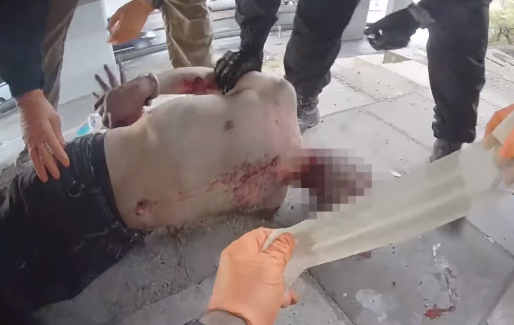VIDEO: Polonahý muž se řezal kusem plechu do krku a rukou, u toho nesrozumitelně křičel