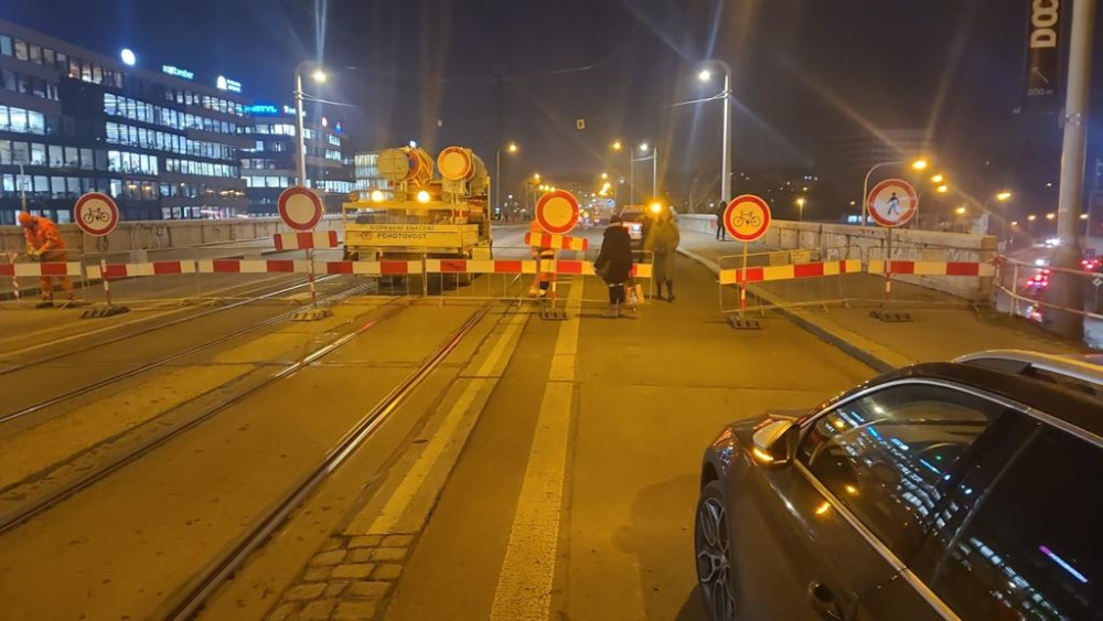 Z havarijních důvodů je uzavřena část Libeňského mostu, tramvaje jezdí odklonem