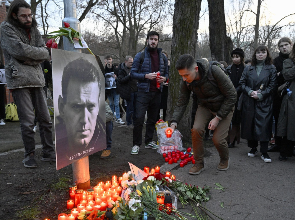 Před ruským velvyslanectvím se sešlo na 200 lidí, aby uctili Navalného