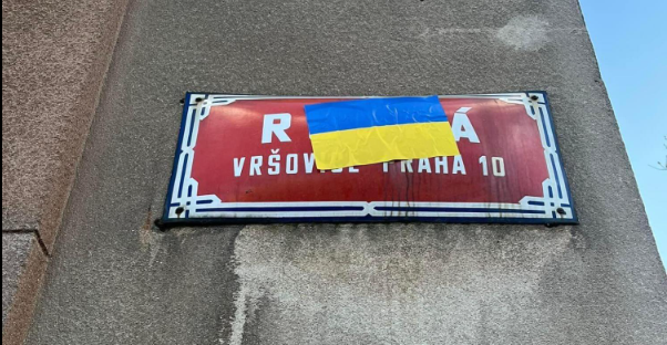 V Ruské ulici někdo přelepil názvy ulice. Odkaz na nálepkách vede na profily ruských politických vězňů