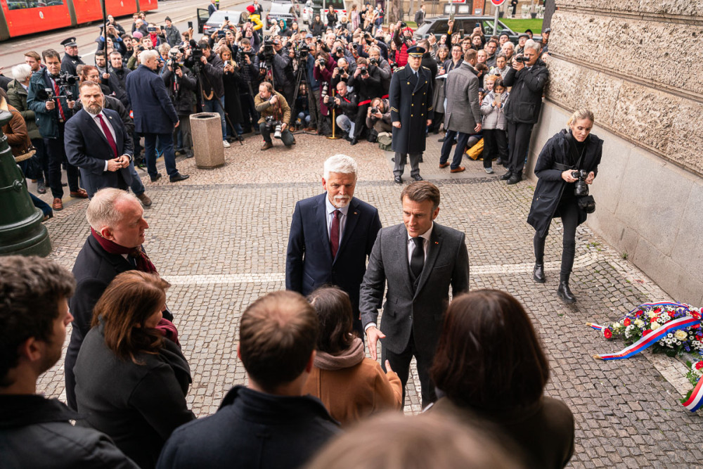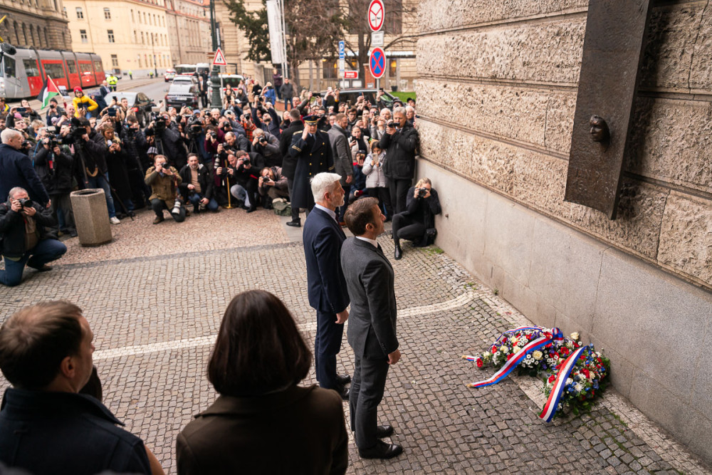 Macron s Pavlem uctili u Filozofické fakulty oběti prosincové střelby