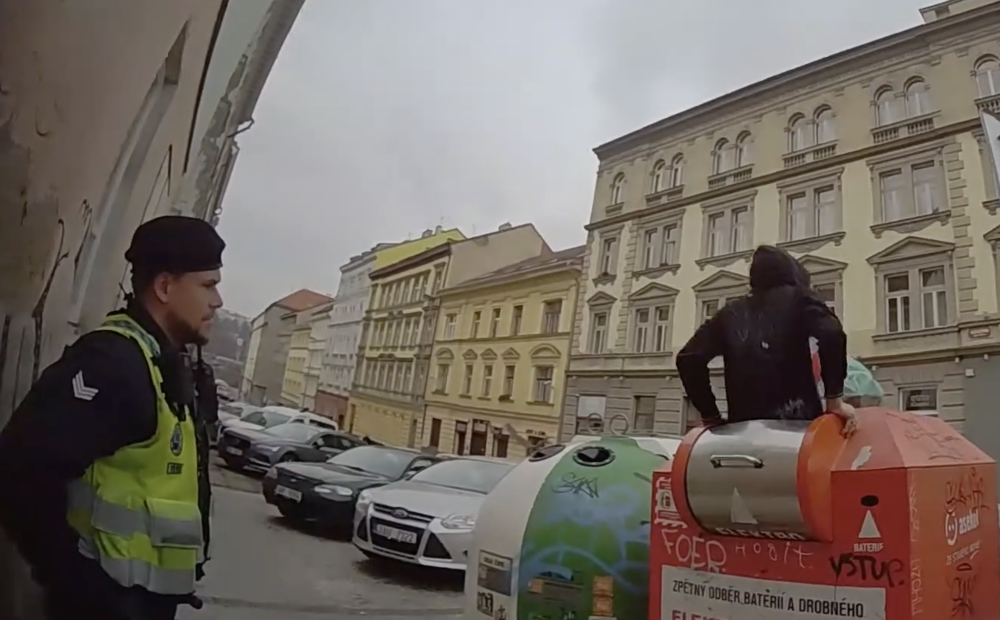 VIDEO: Muž se celý nasoukal do kontejneru, lovil z něj elektroodpad