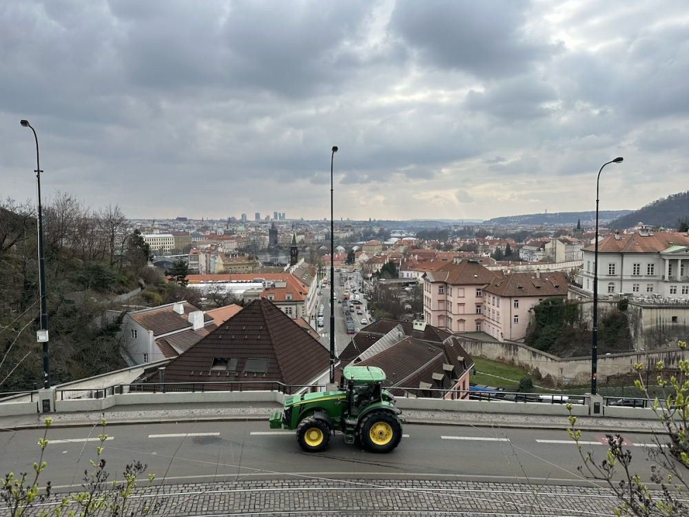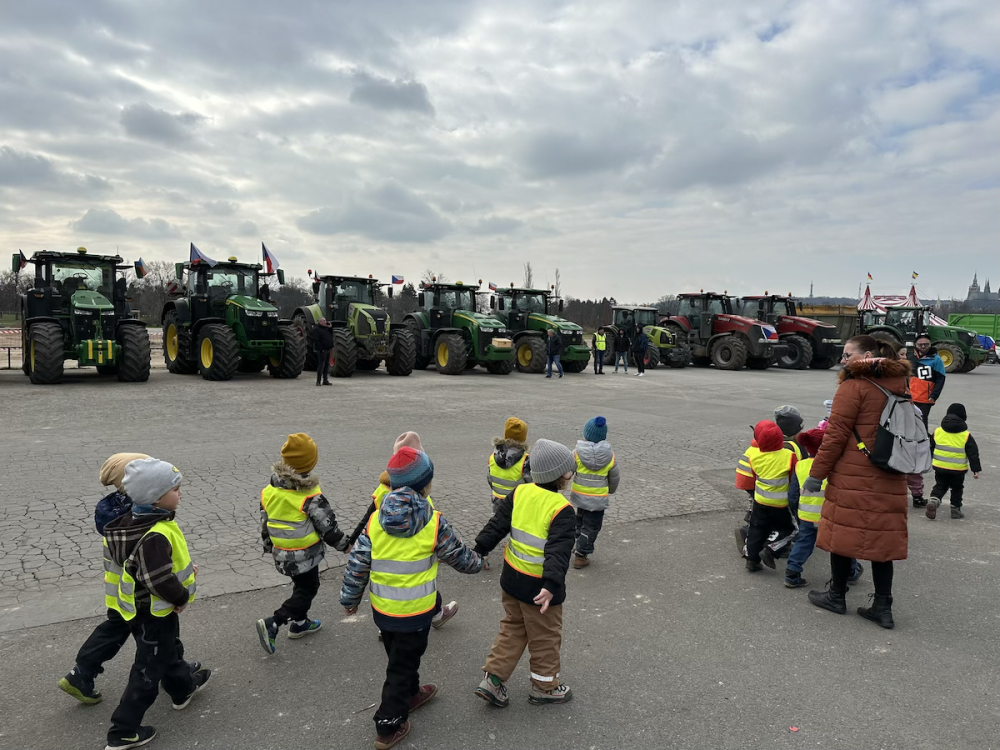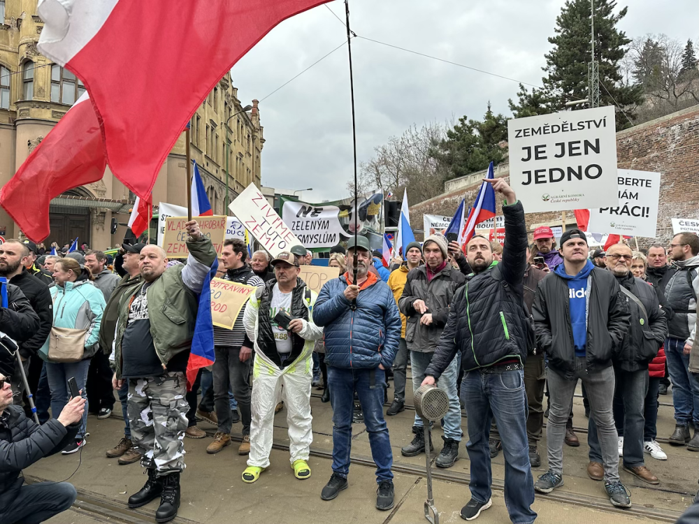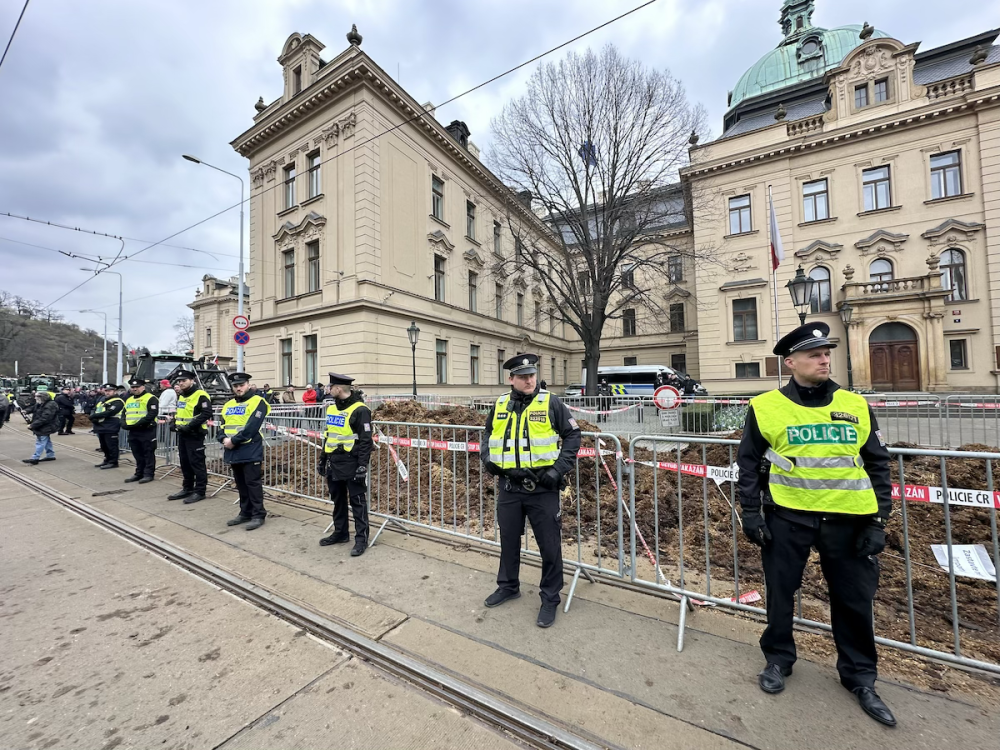 FOTOGALERIE: Hnůj hlídaný policií, naštvaní zemědělci a zase ten guláš. Podívejte se, jak vypadal další protest farmářů