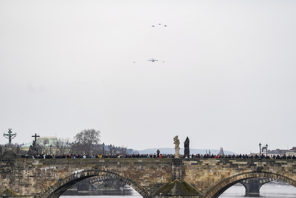 Nad Karlovým mostem proletěly stíhačky. Armáda slaví výročí vstupu do NATO