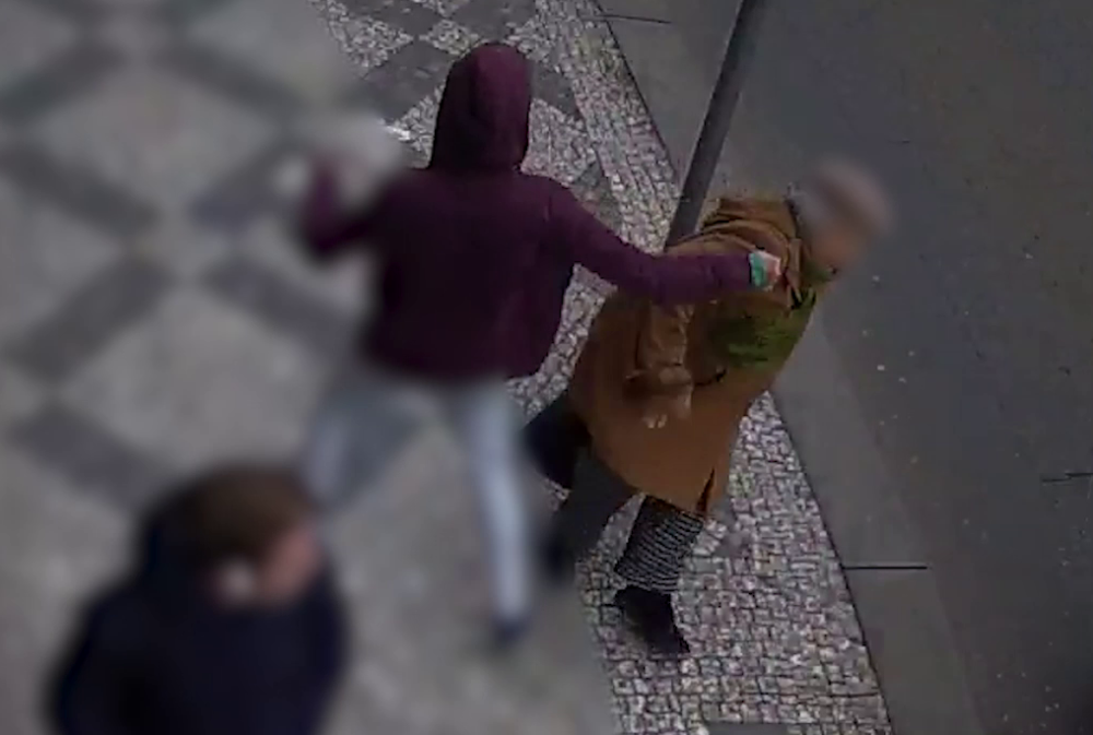 VIDEO: Muž dal pěstí seniorce na ulici v centru Prahy. Spadla přímo před auto