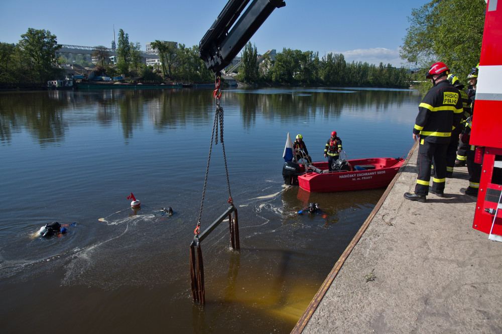 V holešovickém přístavu proběhlo cvičení hasičů a potápěčů