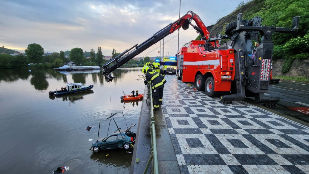 Do Vltavy se z nábřeží zřítilo auto, museli ho vytáhnout hasiči