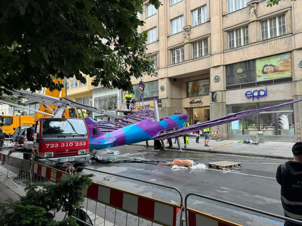 Dělníci začali na obchodní dům Máj instalovat motýlostíhačky Davida Černého