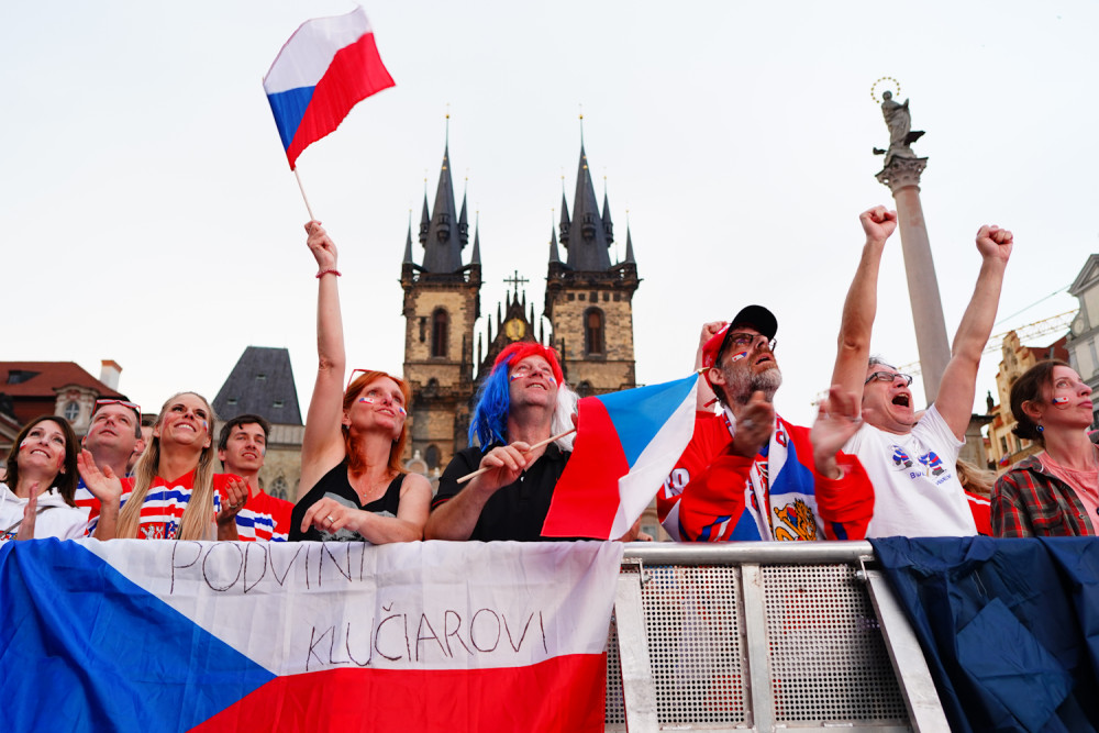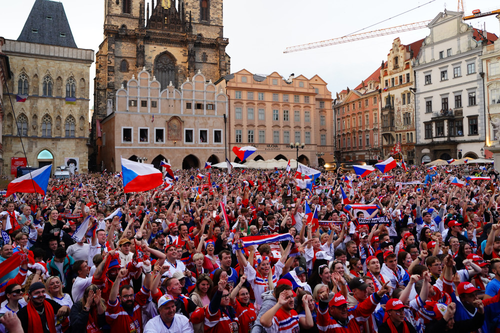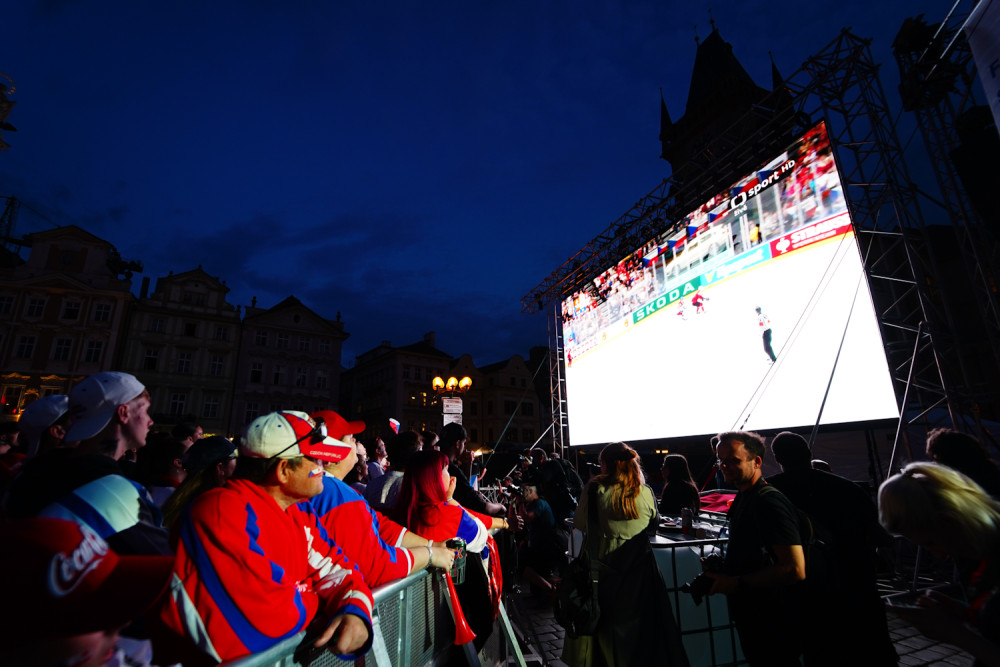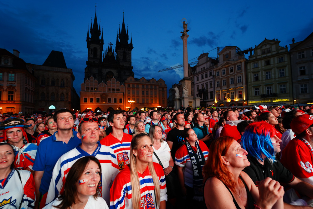 VIDEO: Na Staroměstském náměstí fandí českým hokejistům tisíce lidí. Záchranáři raději přistavili speciál Fénix