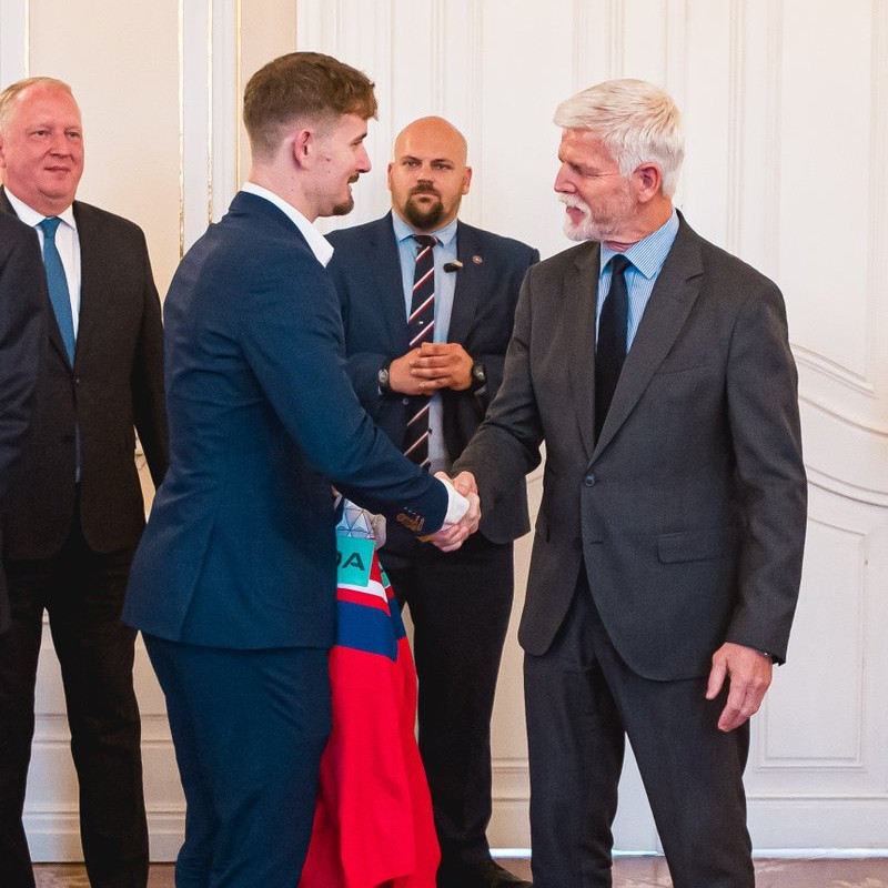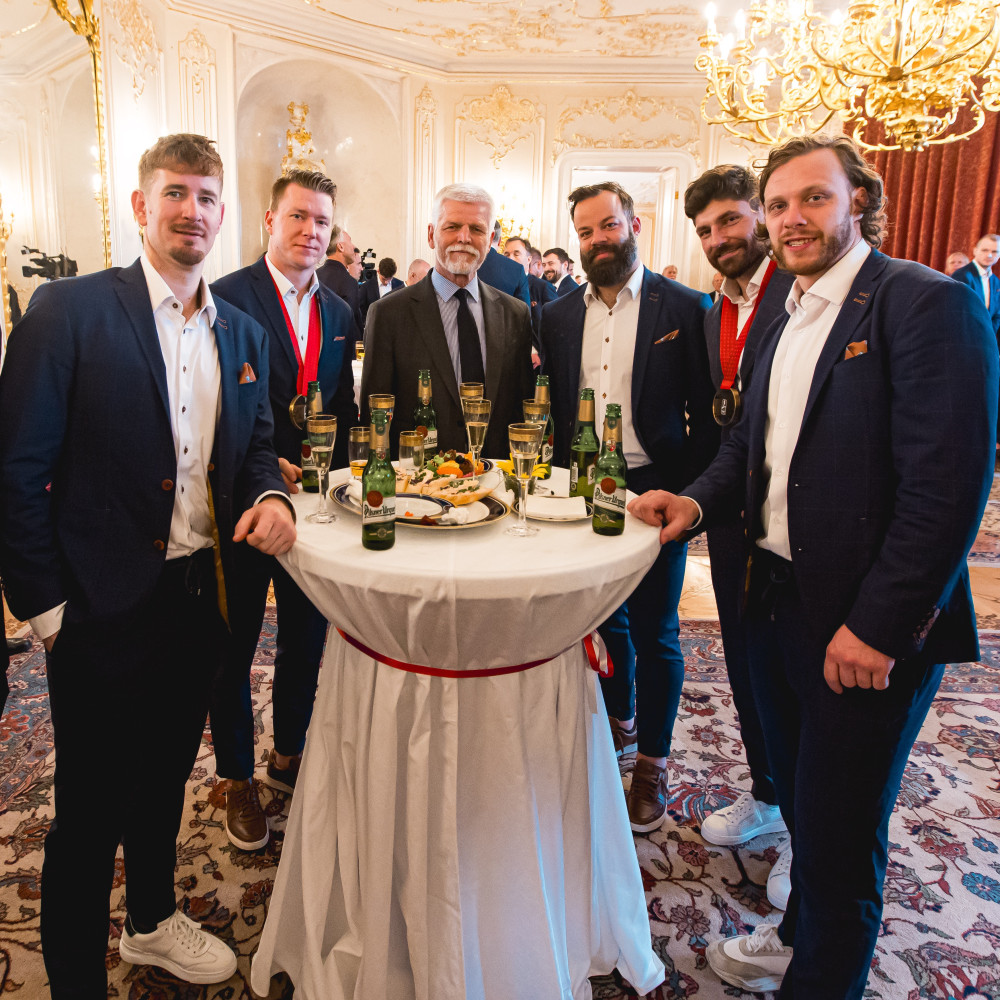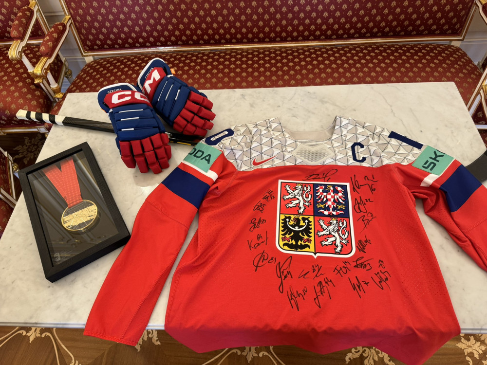 Prezident Pavel přijal na Pražském hradě zlaté hokejisty, dostal medaili, dres a hokejku