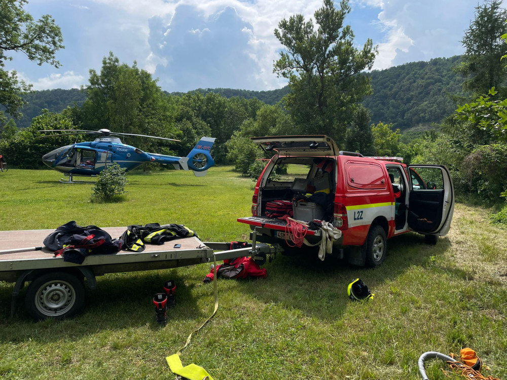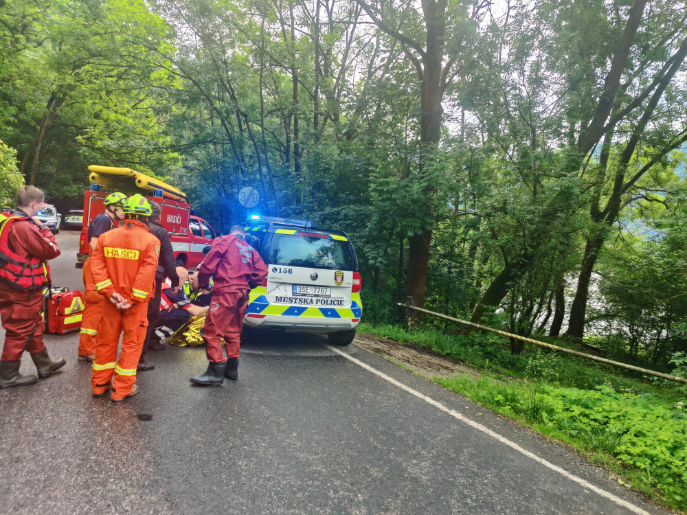 Na jezu v Karlštejně se převrátila loď, zraněné dítě letecky transportovali do nemocnice