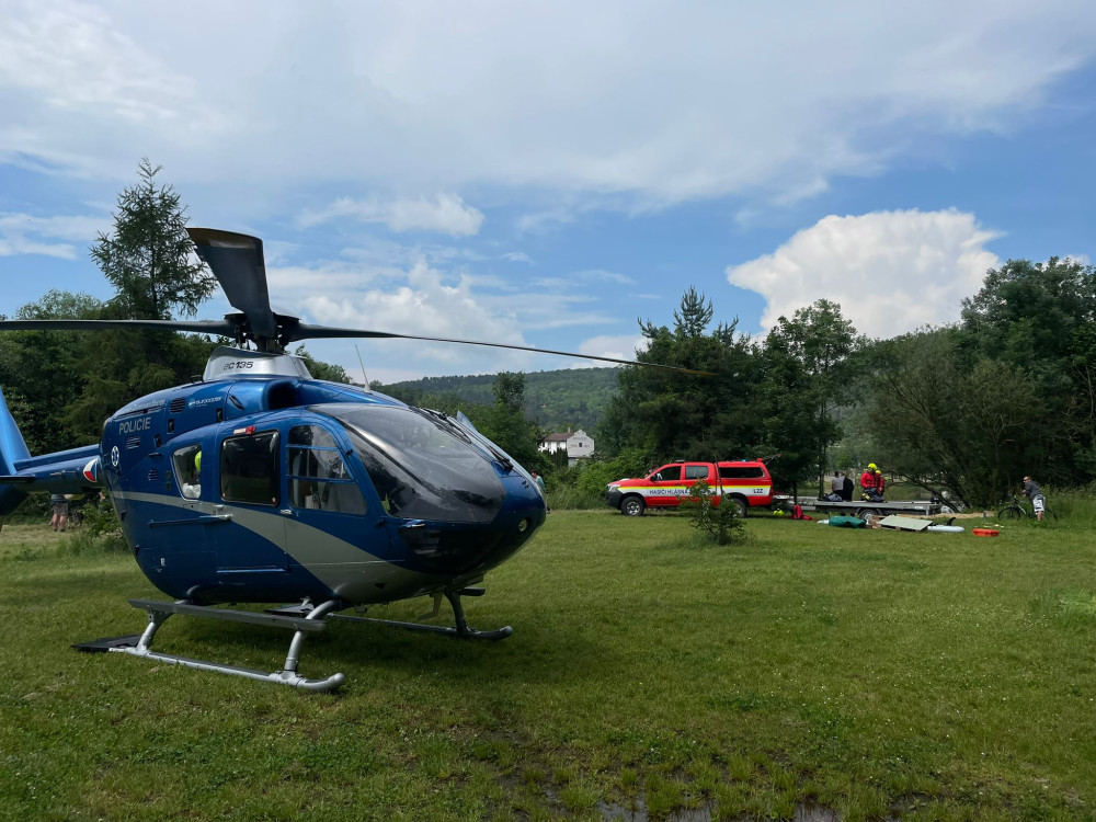 Na jezu v Karlštejně se převrátila loď, zraněné dítě letecky transportovali do nemocnice