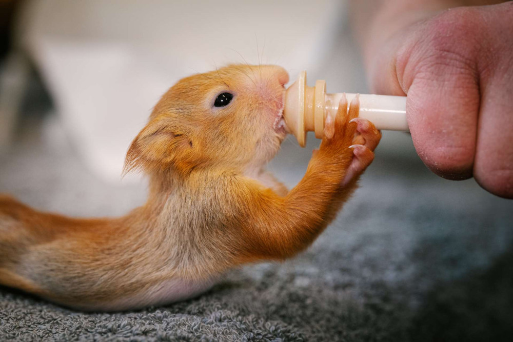 Veverky dostávají mléko pro štěňata.