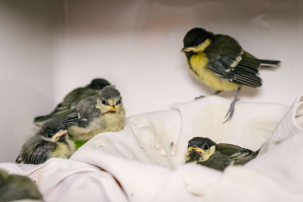 Mláďata sýkor koňader a modřinek.