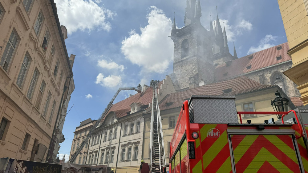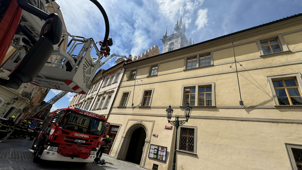 VIDEO: V historickém centru Prahy hořela střecha domu, hasiči evakuovali dvacet lidí