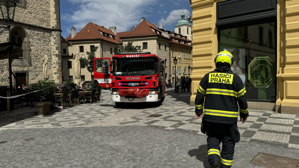 V historickém centru Prahy hoří střecha domu, na místě je pět jednotek hasičů