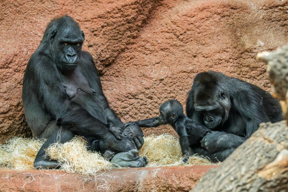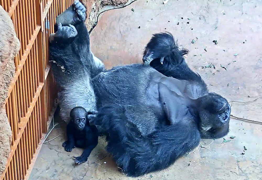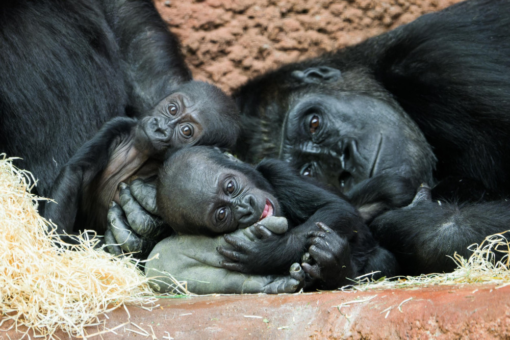 Gorilí mláďata už o sobě vědí a stále častěji tráví čas společně. Zleva Gaia, Mobi a její matka Duni.