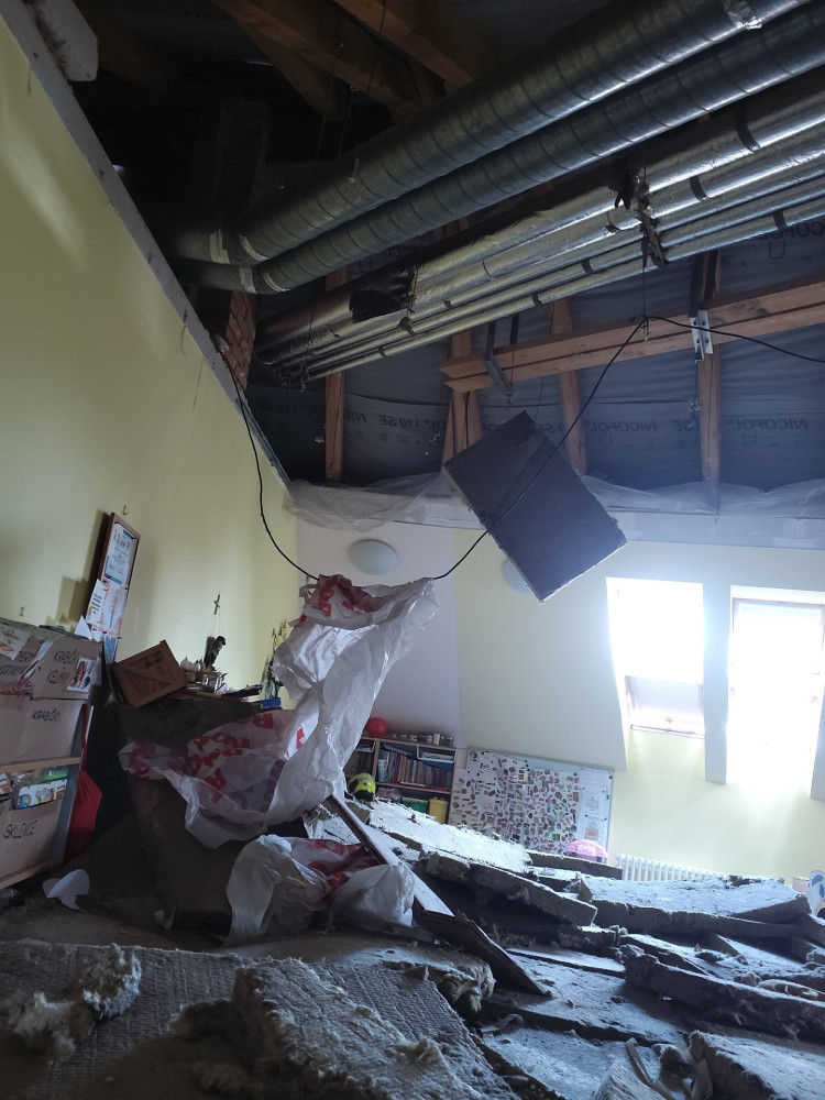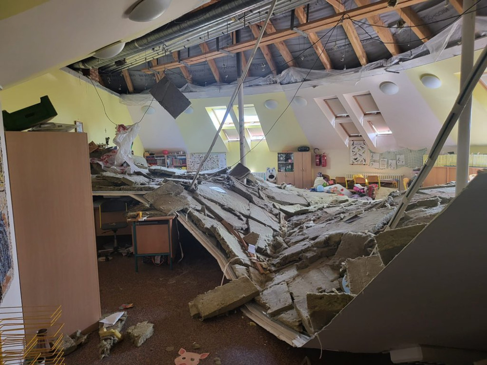 Ve pražské škole spadl strop, děti zachránila učitelka