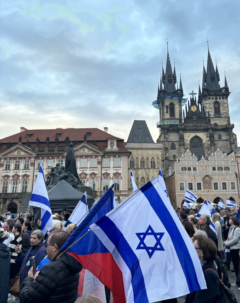 Na podporu Izraele se v Praze sešly stovky lidí, dohlíží policie