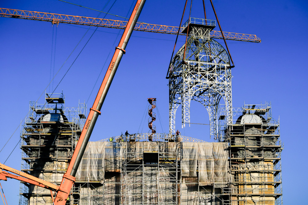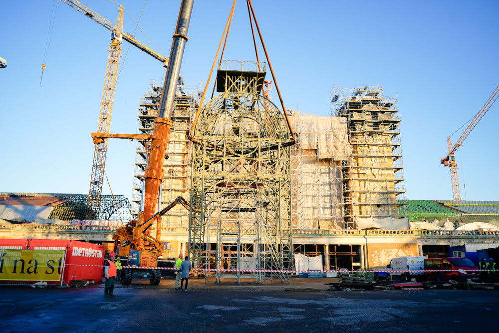 FOTOGALERIE: Hodinová věž je zpět na Průmyslovém paláci, dokončení jeho oprav se ale o rok protáhne