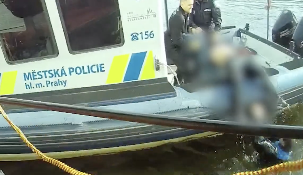 VIDEO: Žena skočila z Výtoňského mostu do Vltavy, život jí zachránili strážníci