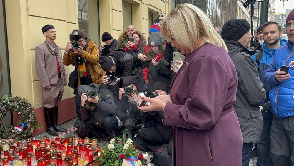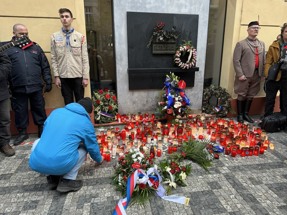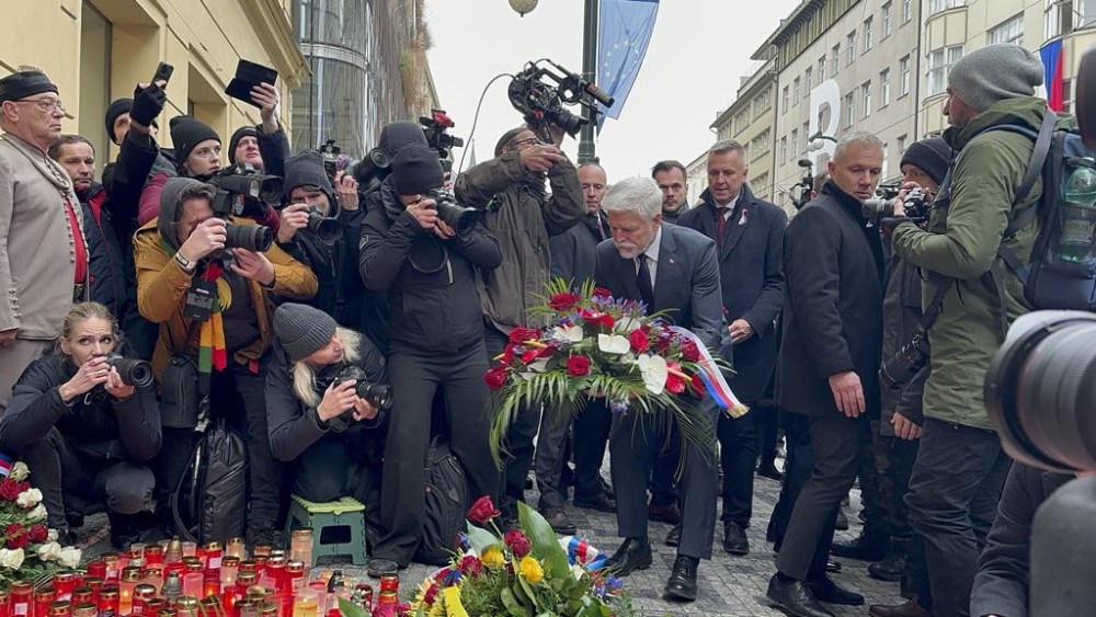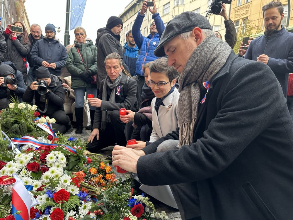 Na Národní třídu přišel položit květiny prezident Petr Pavel, vládní i opoziční politici