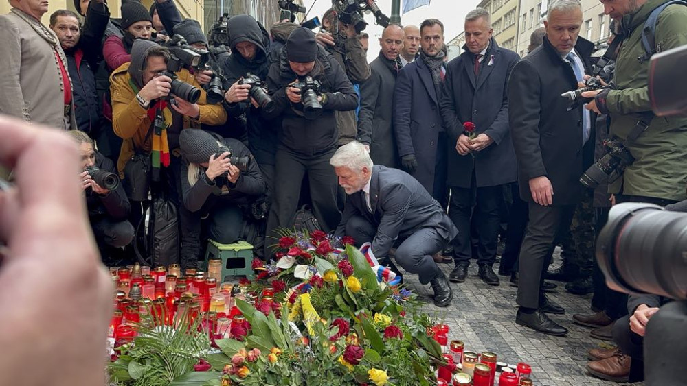 Na Národní třídu přišel položit květiny prezident Petr Pavel, vládní i opoziční politici