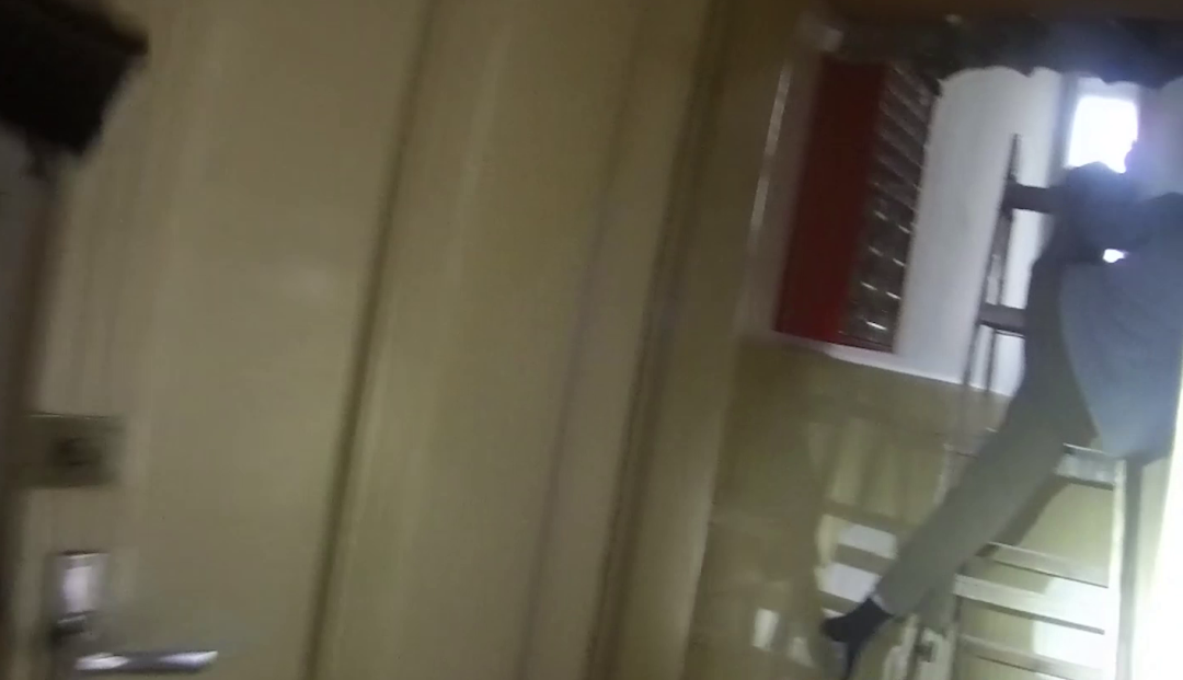 VIDEO: Seniorka doma uvízla na štaflích, policisté museli vykopnout dveře, aby ji zachránili
