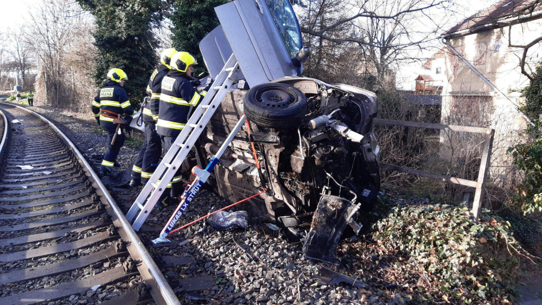 VIDEO: V Praze srazil vlak na přejezdu auto, tři zraněné z něj museli vyprostit