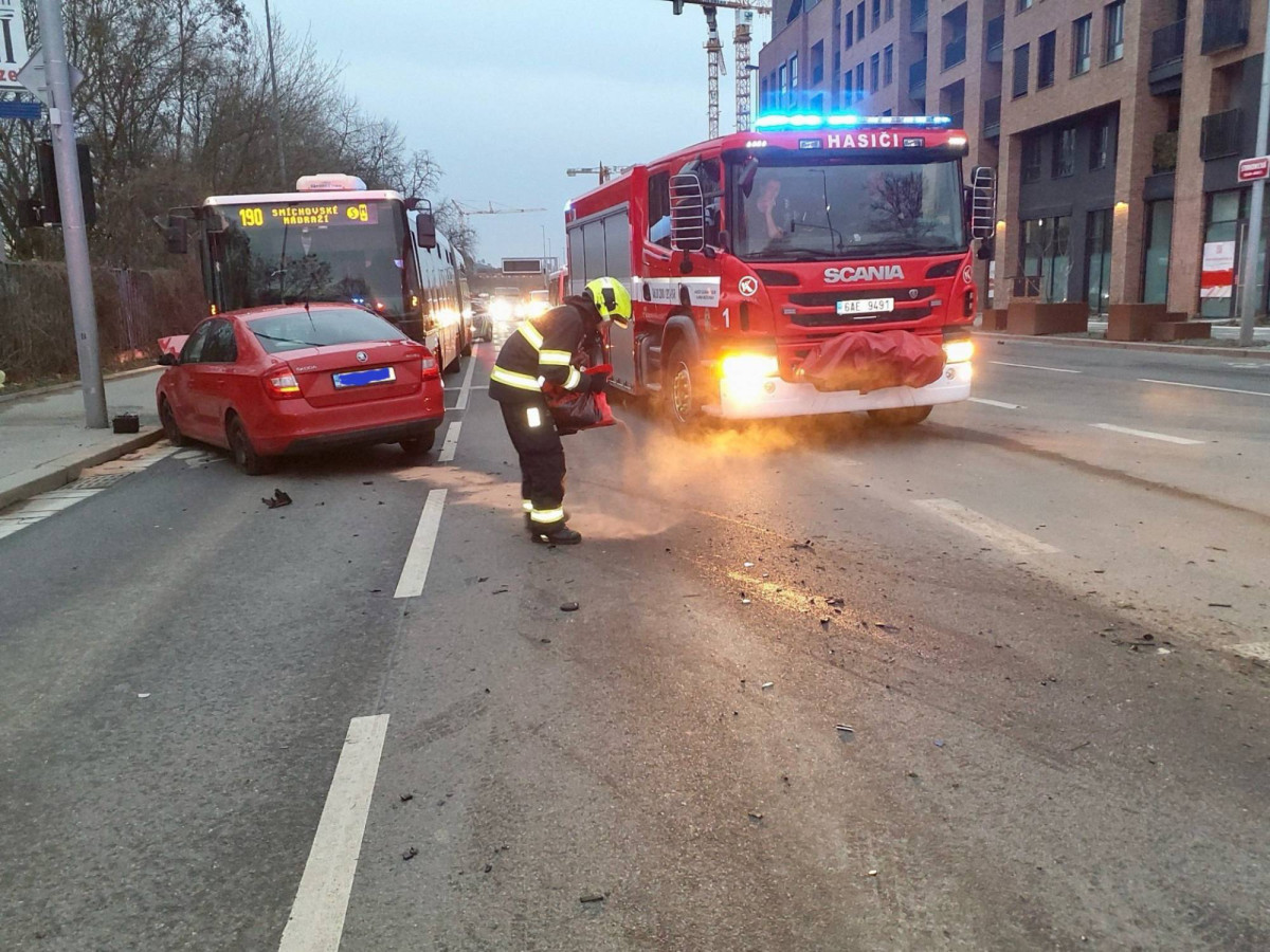 V Praze se srazil autobus s autem, jeden člověk se zranil